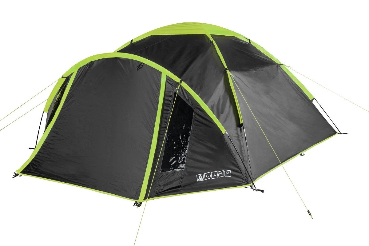 Deze tent is ideaal voor trekking, kamperen, wandelen en festivals dankzij de compacte pakafmetingen. De levering omvat een 4-persoons koepeltent van robuust polyester inclusief afspanmateriaal, glasvezelstokken, waterdichte opbergzak en haringen.
