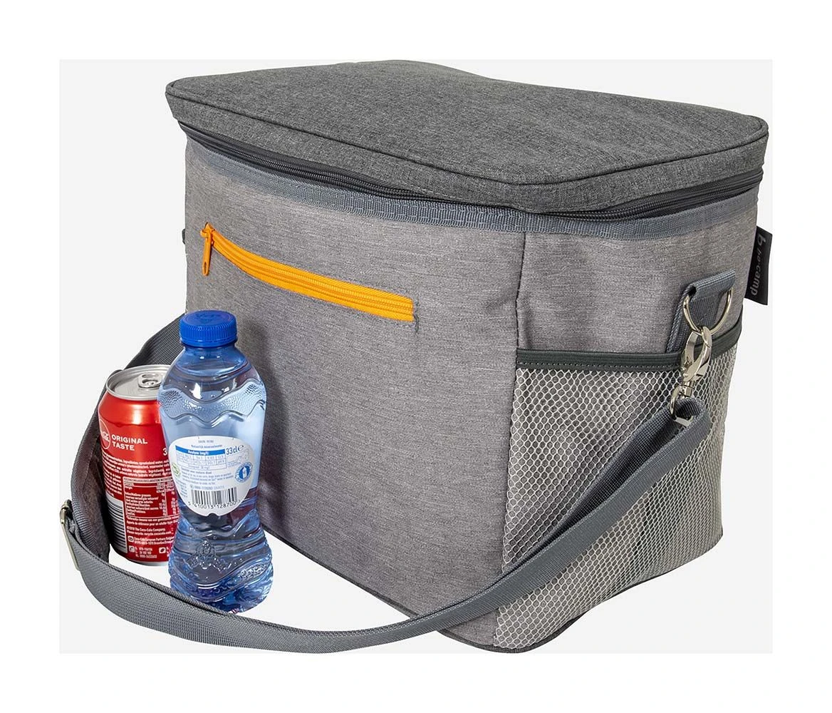 Een zeer handige koeltas. Uitstekende isolerende werking door het EVA isolatie materiaal. De koeltas is voorzien van een handige draagriem, een voorvakje met rits en 2 mesh zijvakjes.