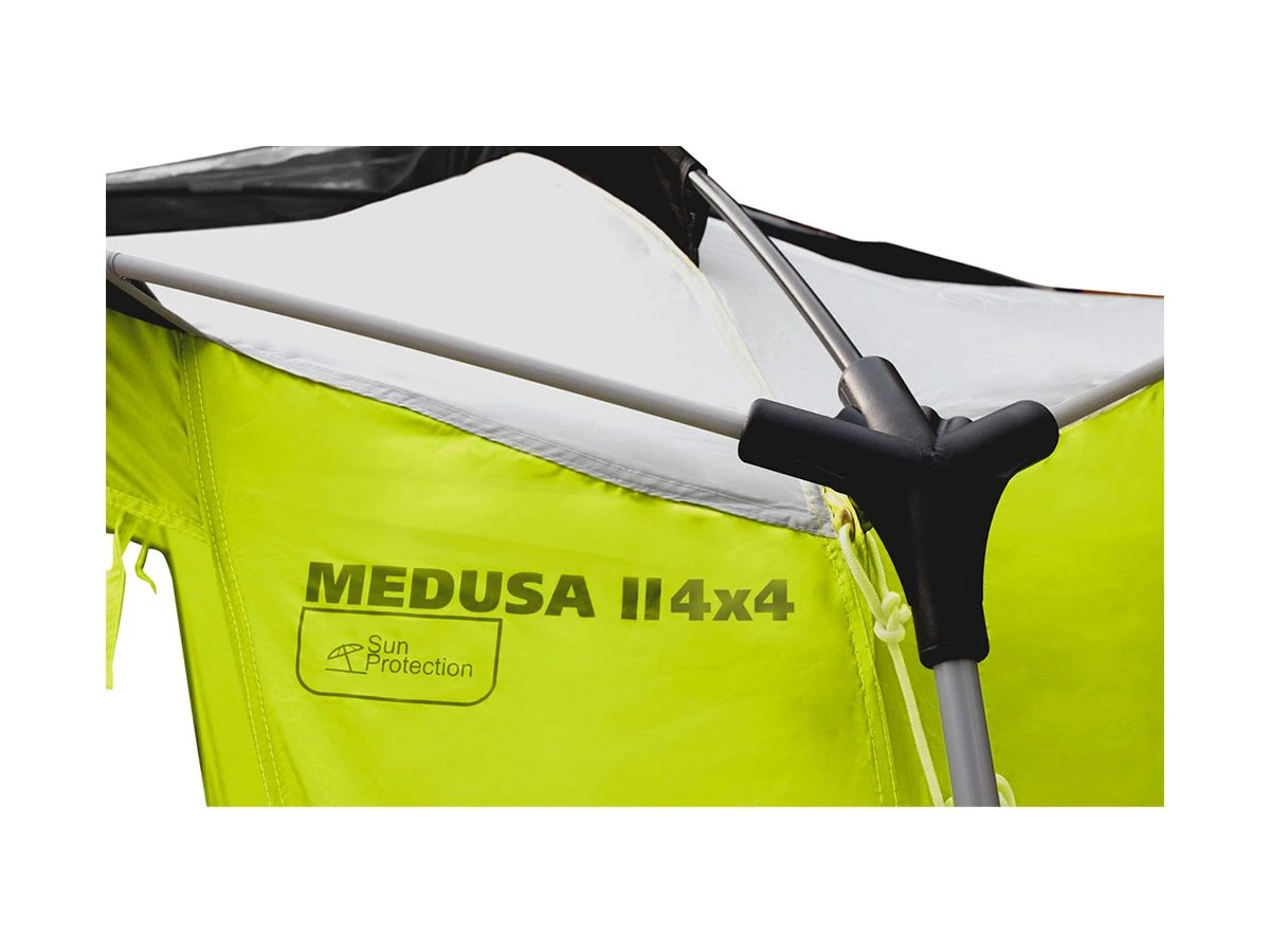 De Brunner Medusa II 3×3 is jouw betrouwbare metgezel voor ontspannen uren in de buitenlucht. Of het nu gaat om kamperen, een festival of in de tuin – deze paviljoen biedt jou en jouw dierbaren de perfecte bescherming tegen zon en regen.