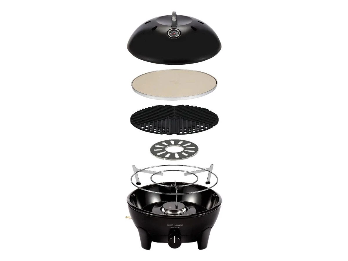 Deze veelzijdige en compacte gasbarbecue biedt alles wat je nodig hebt om in de buitenlucht culinaire hoogstandjes te bereiden. Met een BBQ-rooster, pizzasteen, pandrager en een percolatorhouder is dit de ideale barbecue voor kampeerders die comfort en functionaliteit zoeken.
