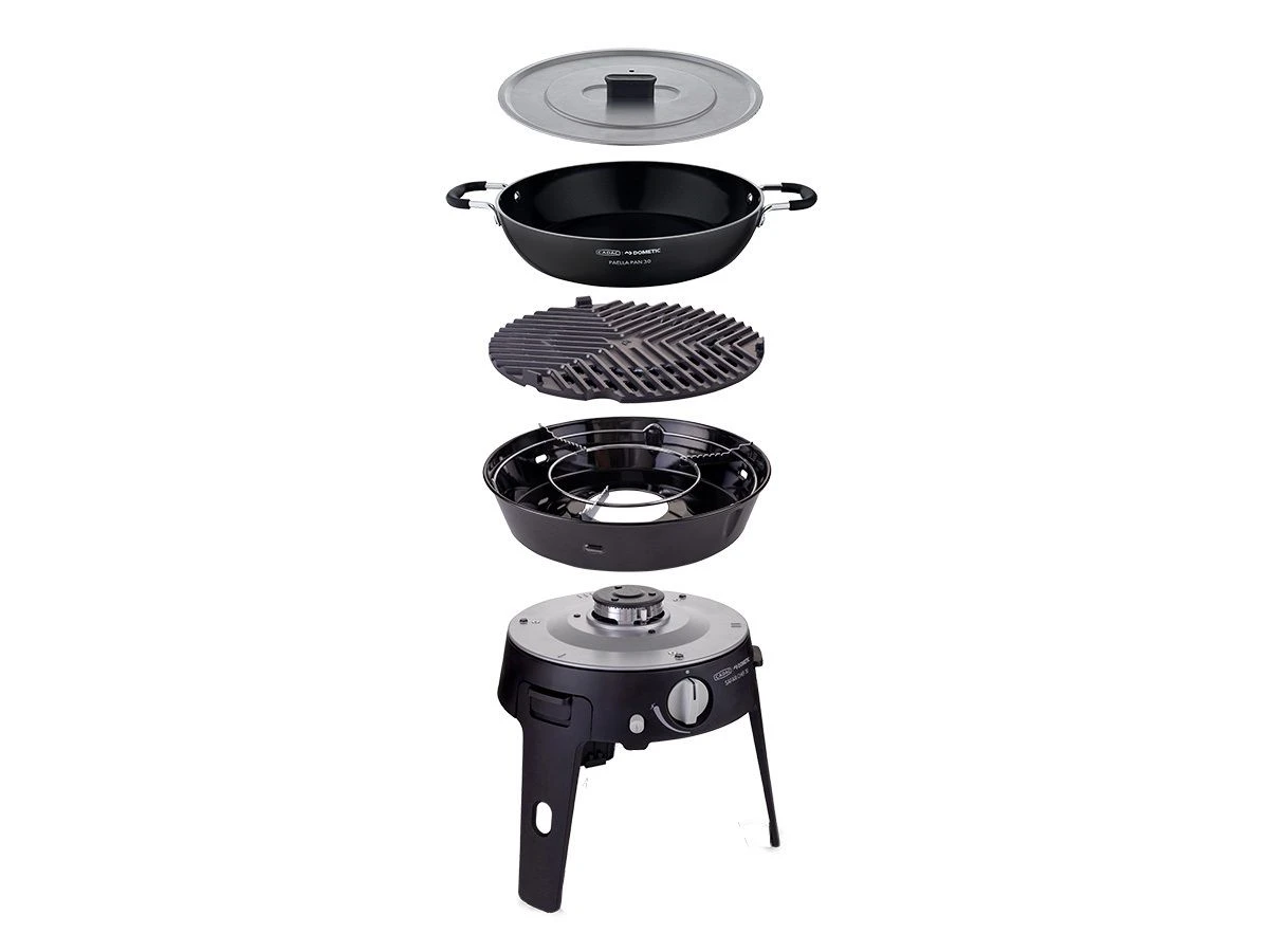Met een gewicht van slechts 5,5 kg en inklapbare pootjes neem je deze lichtgewicht BBQ eenvoudig overal mee naartoe. Deze uitvoering wordt geleverd met de populaire Paella Pan 30 met rvs deksel, een BBQ-rooster en een pandrager, waardoor je talloze gerechten kunt bereiden.