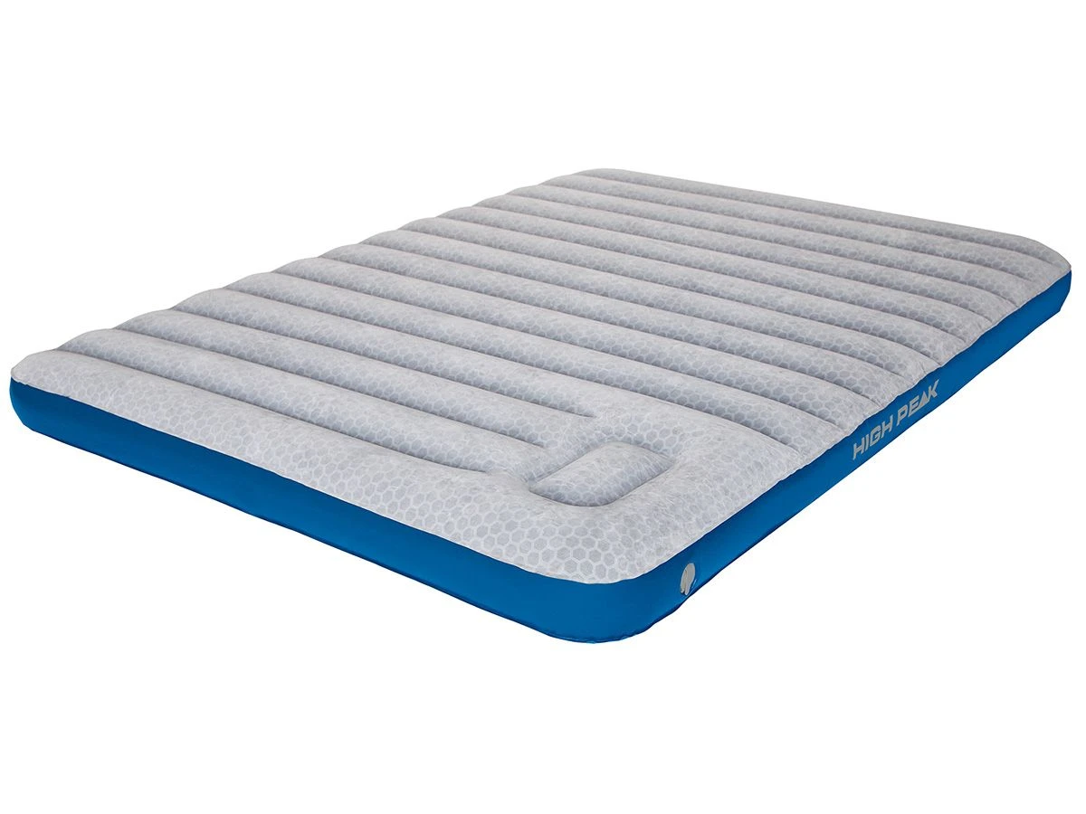 Dit extra-lange luchtbed Cross Beam Double van High Peak is geschikt voor 2 personen. De geïntegreerde en gepatenteerde ingebouwde voetpomp zorgt ervoor dat u het luchtbed overal gemakkelijk kunt oppompen, zonder een extra pomp mee te hoeven nemen. Het luchtbed is uitermate geschikt voor logeerpartijen of voor op de camping! In zeer korte tijd is dit airbed op te blazen. De bovenzijde met trendy honingraat motief is gemaakt van huidvriendelijk flocked/velours materiaal en de speciale constructie met horizontale luchtkamers zorgt voor een goede verdeling van het gewicht en dus extra lig-/slaapcomfort.