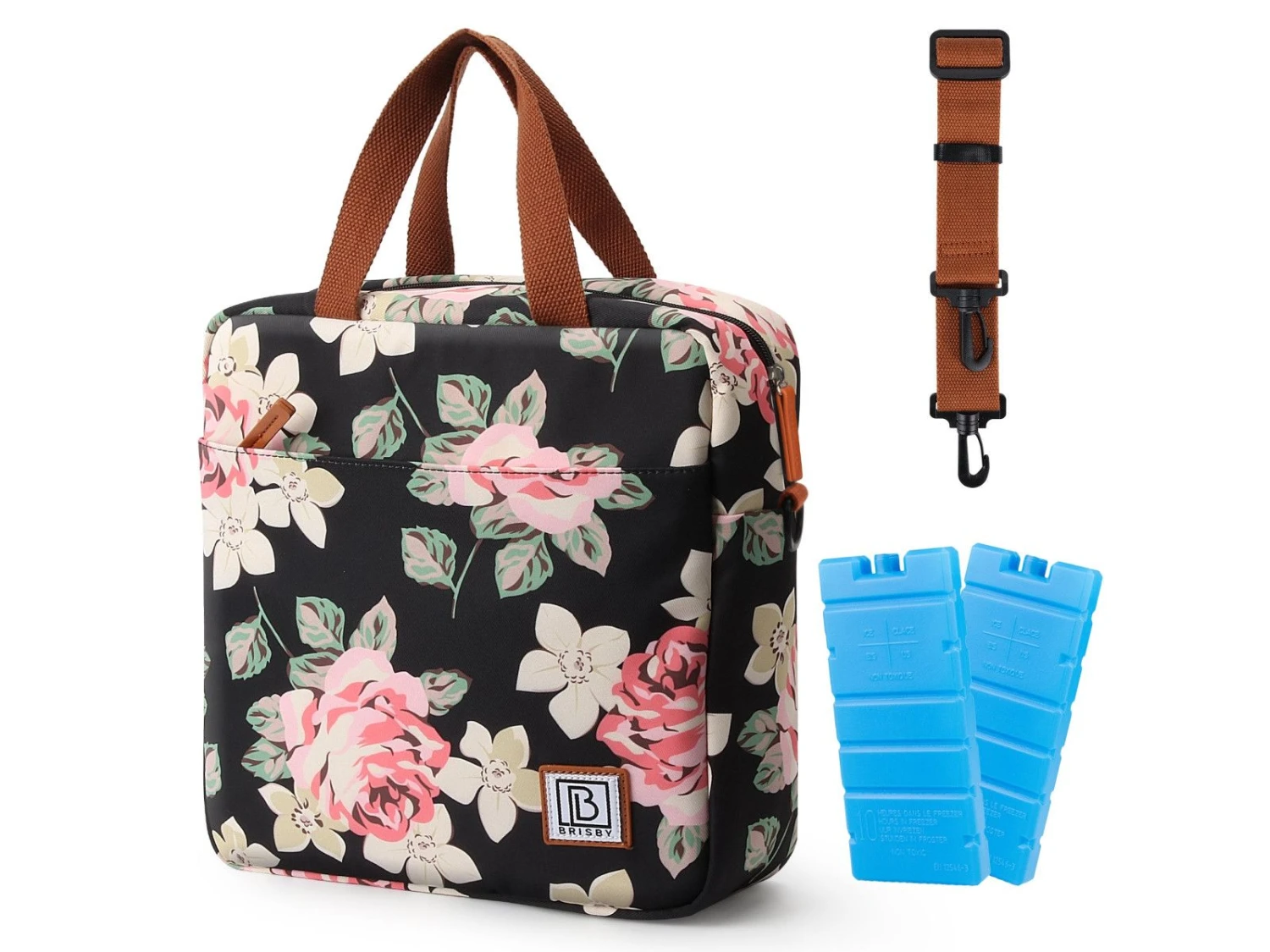 Brisby 4 Laags Geïsoleerde Koeltas – Lunchtas 7 liter – Witte Bloem – Lunchtas voor onderweg – Inclusief schouderband – 2 gratis koelelementen van 200 ML.