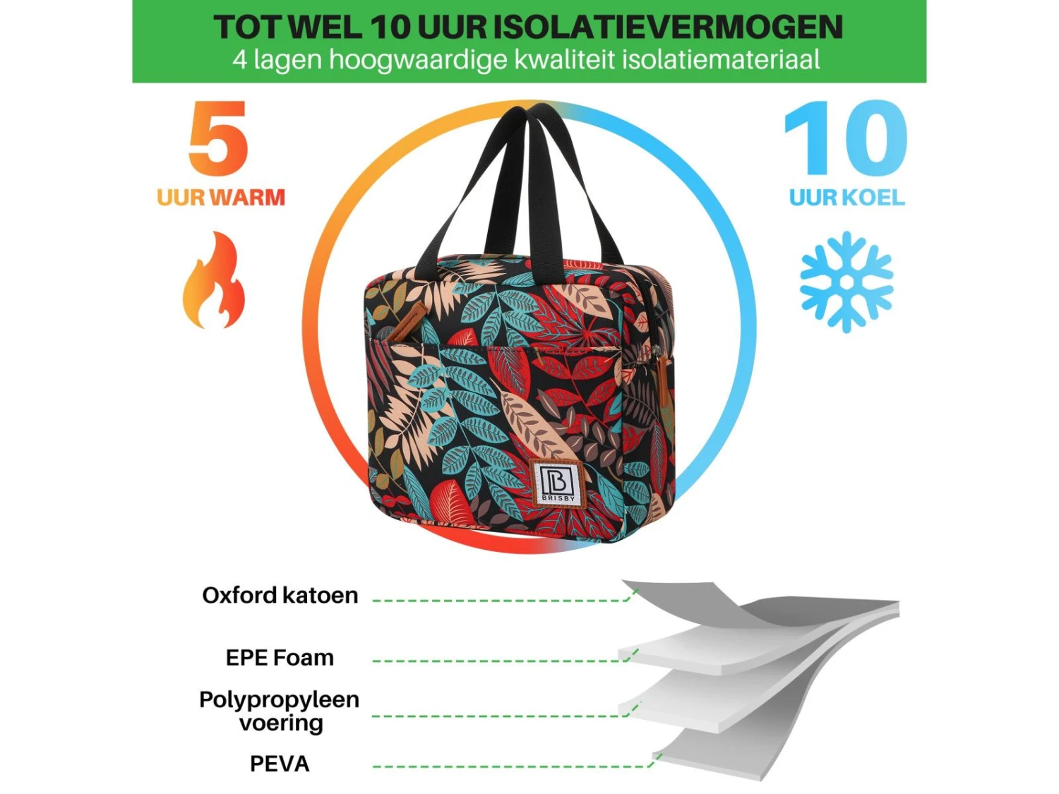 Ben je op zoek naar een topkwaliteit koeltas? Brisby 4 Laags Geïsoleerde Koeltas – Lunchtas 4 liter – Jungle – Gratis koelelement – Koelen en warm houden
