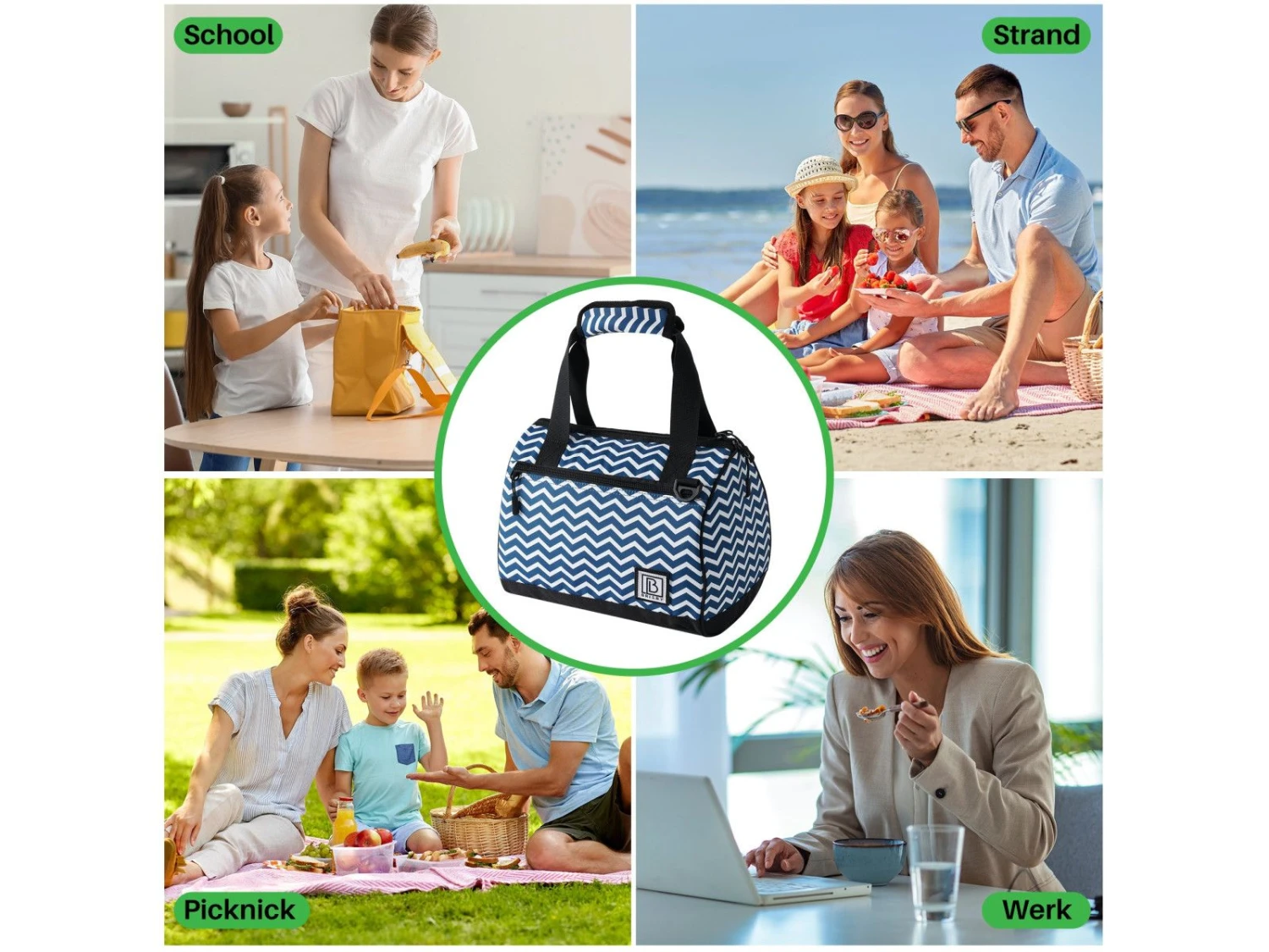Ben je op zoek naar een topkwaliteit koeltas? Brisby 4 Laags Geïsoleerde Koeltas – Lunchtas 10 liter – Zigzag Blauw – 2 Gratis koelelementen – Koelen en warm houden