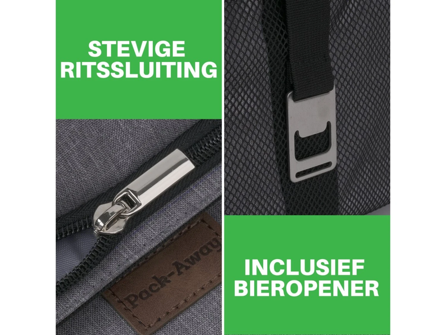 Bent u op zoek naar een topkwaliteit koeltas? Met de Pack-Away koeltas van WeVe Goods blijven uw producten lang koel. Door de grote opening kunt u gemakkelijk uw producten erin doen of eruit halen.