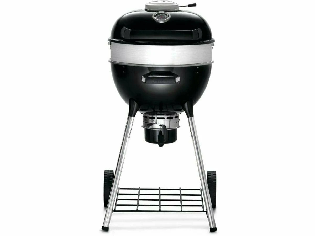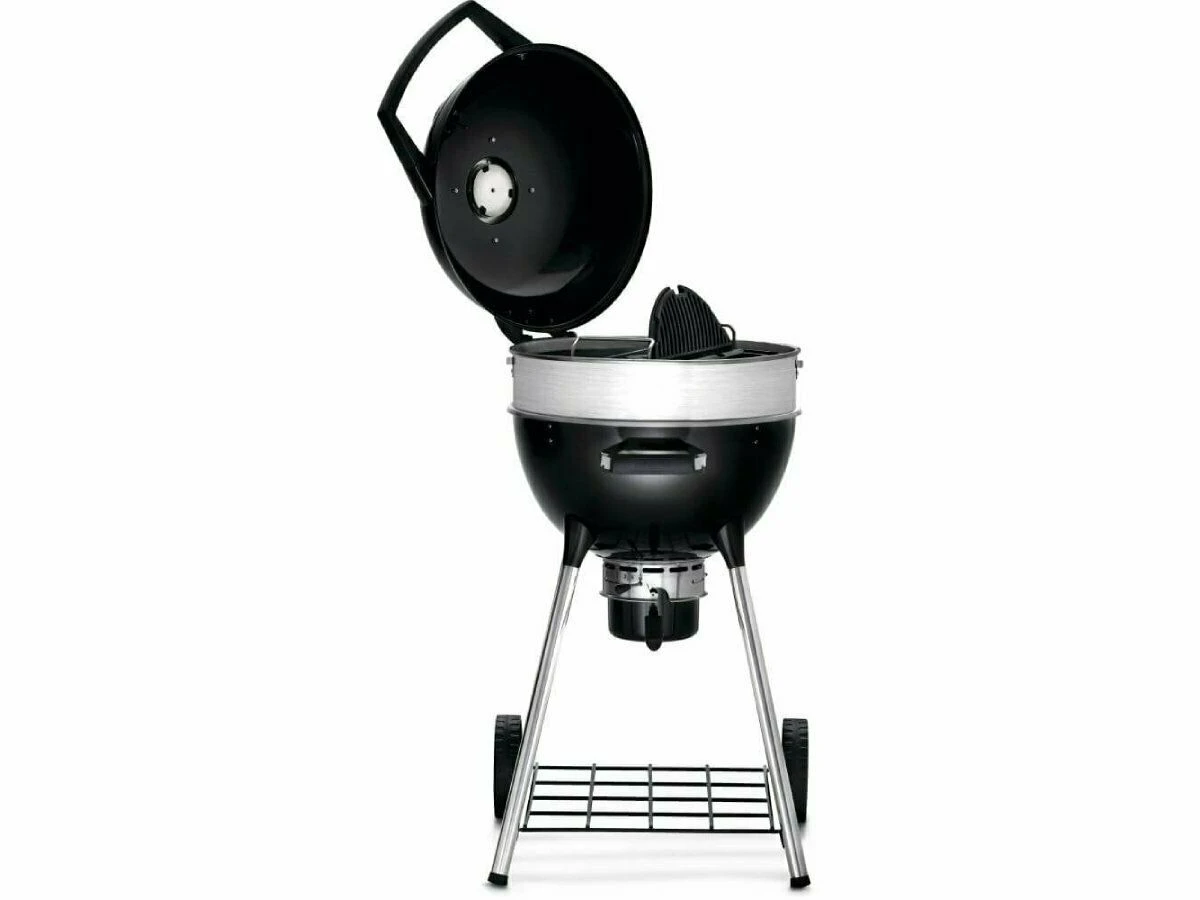 Het innovatieve kegelvormige Vortex-systeem zorgt voor optimale luchtcirculatie en efficiënt brandstofverbruik, terwijl gloeiende as snel wordt afgevoerd naar de asemmer. Het geïntegreerde schoorsteensysteem biedt nauwkeurige temperatuurregeling en beschermt de barbecue tegen wind en regen. De barbecue is ontworpen voor veelzijdigheid en gemak. Het geëmailleerde frame is duurzaam en weersbestendig, met een strak afgewerkte look. Het scharnierdeksel biedt veilige toegang tot het ruime grilloppervlak en houdt je handen beschermd tegen hitte. De uitbreidingsring van roestvrij staal is perfect voor het installeren van een draaispitset, met afdekkappen voor optimale temperatuurbeheersing. Dankzij geïntegreerde deuropeningen voor thermometers kun je zowel de temperatuur in de barbecue als die van je gerechten nauwkeurig monitoren. De Napoleon Pro 47 cm houtskool BBQ combineert robuustheid, innovatie en flexibiliteit – de perfecte metgezel voor iedere barbecuefan!