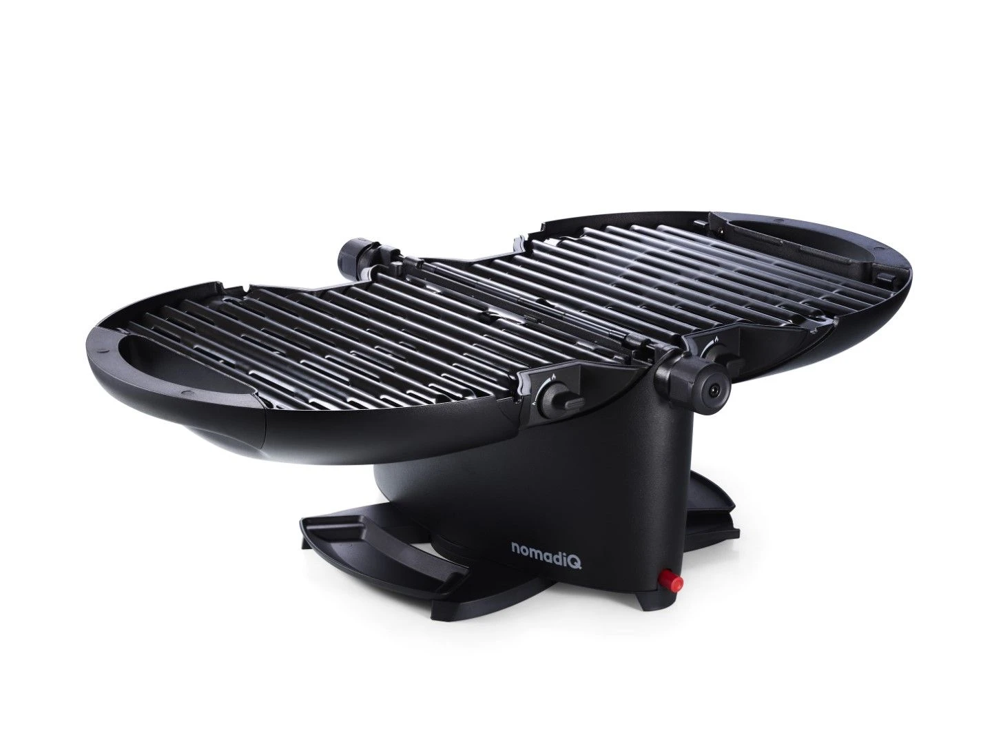 De nomadiQ BBQ is gemaakt om altijd en overal te kunnen gebruiken waar je maar wilt. Vanwege het portable ‘ lichtgewicht’ design kan de BBQ overal mee naartoe genomen worden. De twee grote afzonderlijke te bedienen grilloppervlakten zorgen ervoor dat je aan de ene kant bijvoorbeeld vlees of vis op een lagere temperatuur gaart, en aan de andere kant groenten op een hogere temperatuur kan grillen. De nomadiQ BBQ is de eerste in zijn soort en combineert een slim draagbaar ontwerp met een groot grilloppervlak en veel comfort.
