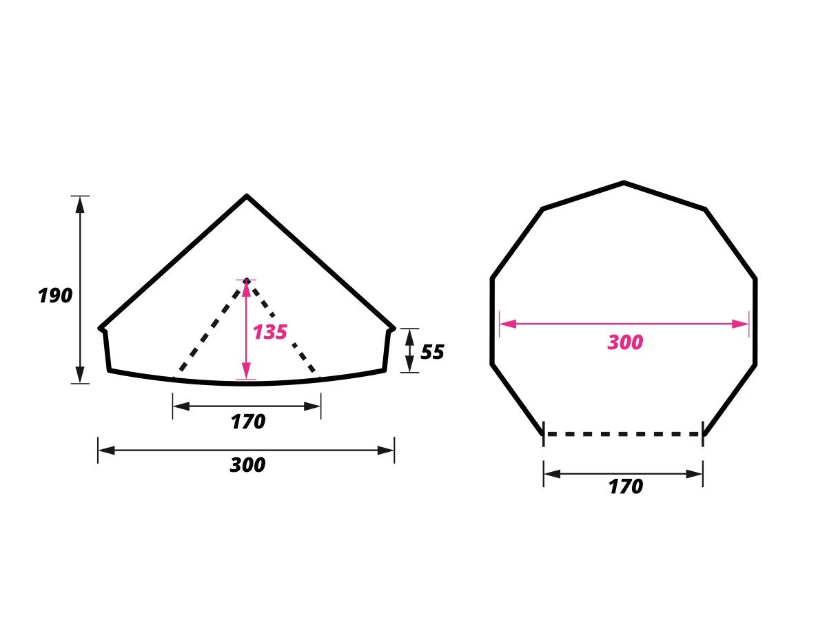 De 300 cm uitvoering is geschikt voor twee personen die nog een klein beetje ruimte over willen houden in de tent. Er past een groot tweepersoons luchtbed in deze tent. Als je gebruik maakt van kleinere luchtbedden of matrasjes kun je er maximaal vier kwijt.