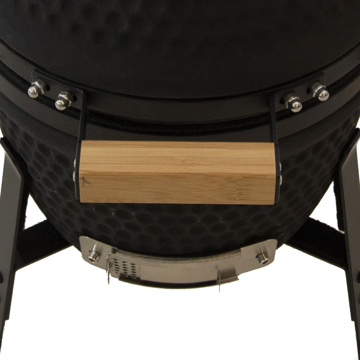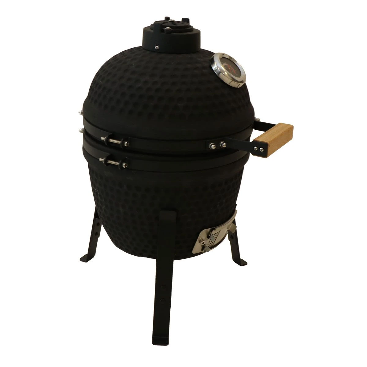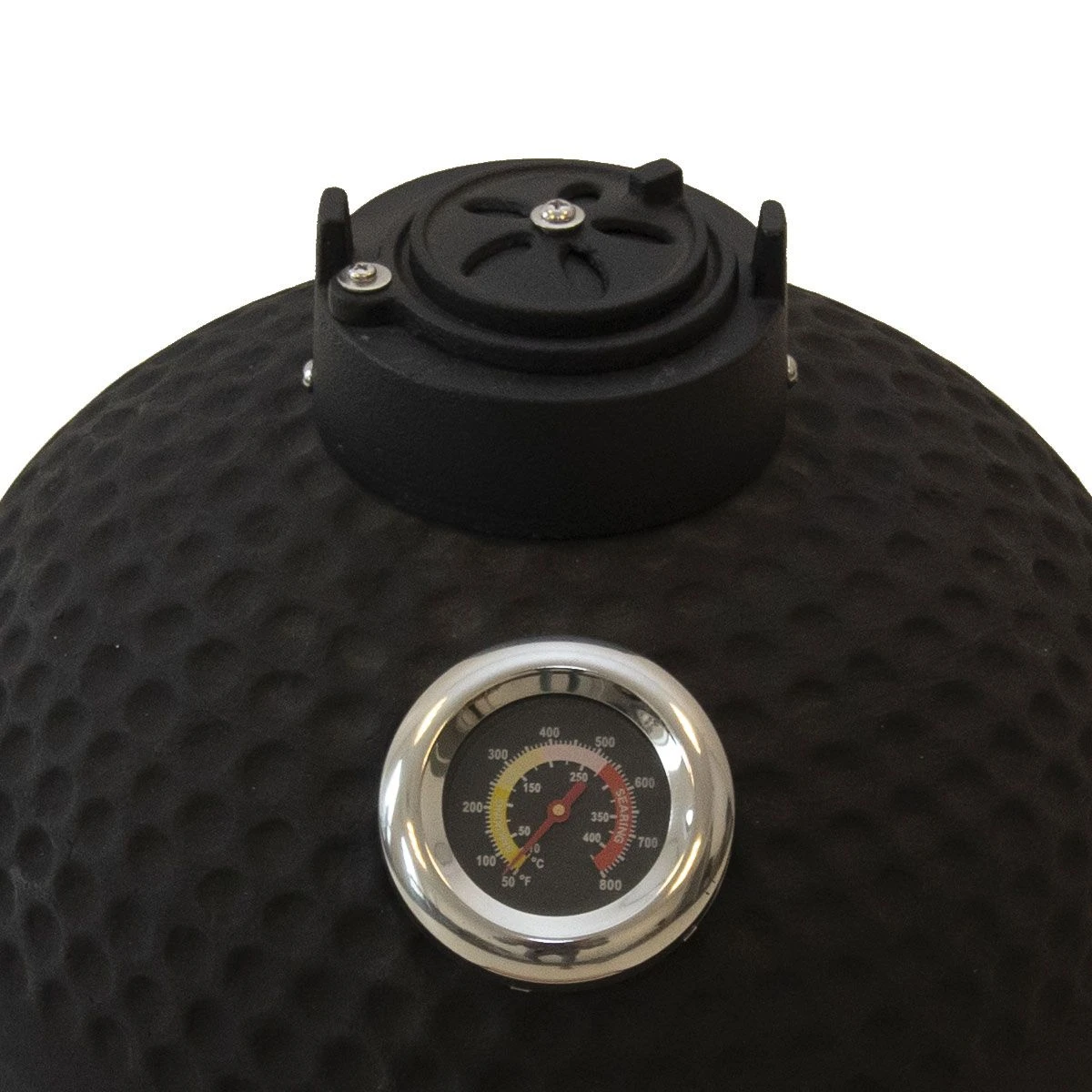 De Patton Kamado Grill 13 inch barbecue zwart is een prachtige barbecue. De Naam Kamado is het japanse woord voor kachel of fornuis. Deze prachtige barbecue is veel terug te vinden in de keukens van Michelin sterren restaurants. Deze Patton Kamado 13 inch barbecue is vervaardigd uit een keramische schaal en daarmee bestand tot 1.000 graden Celsius. De vleessappen blijven heerlijk behouden in deze houtskool barbecue, hierdoor blijft het vlees malser. Het is mogelijk om met deze heerlijke barbecue te grillen, roken, maar ook pizza’s kunnen ermee gebakken worden. Dankzij de handige luchtstroom kan er gecontroleerd worden gebarbecued. De barbecue is voorzien van een keramische schaal zodat het vlees sappiger en malser blijft in vergelijking met andere barbecues. De deksel is voorzien van een temperatuur meter. De houtskool barbecue kan gemakkelijk worden aangestoken met een briketten starterset. Als de briketten of houtskool warm is, kan de barbecue worden gestart. Dankzij het ventilatie rooster kan de luchttoevoer worden geregeld. De houtskool barbecue in de kleur zwart met een afmetingen van B 34 x D 34 x H 57 cm. De kookoppervlak is Ø 28 cm gemaakt van keramische tafelmodel houtskool barbecue.