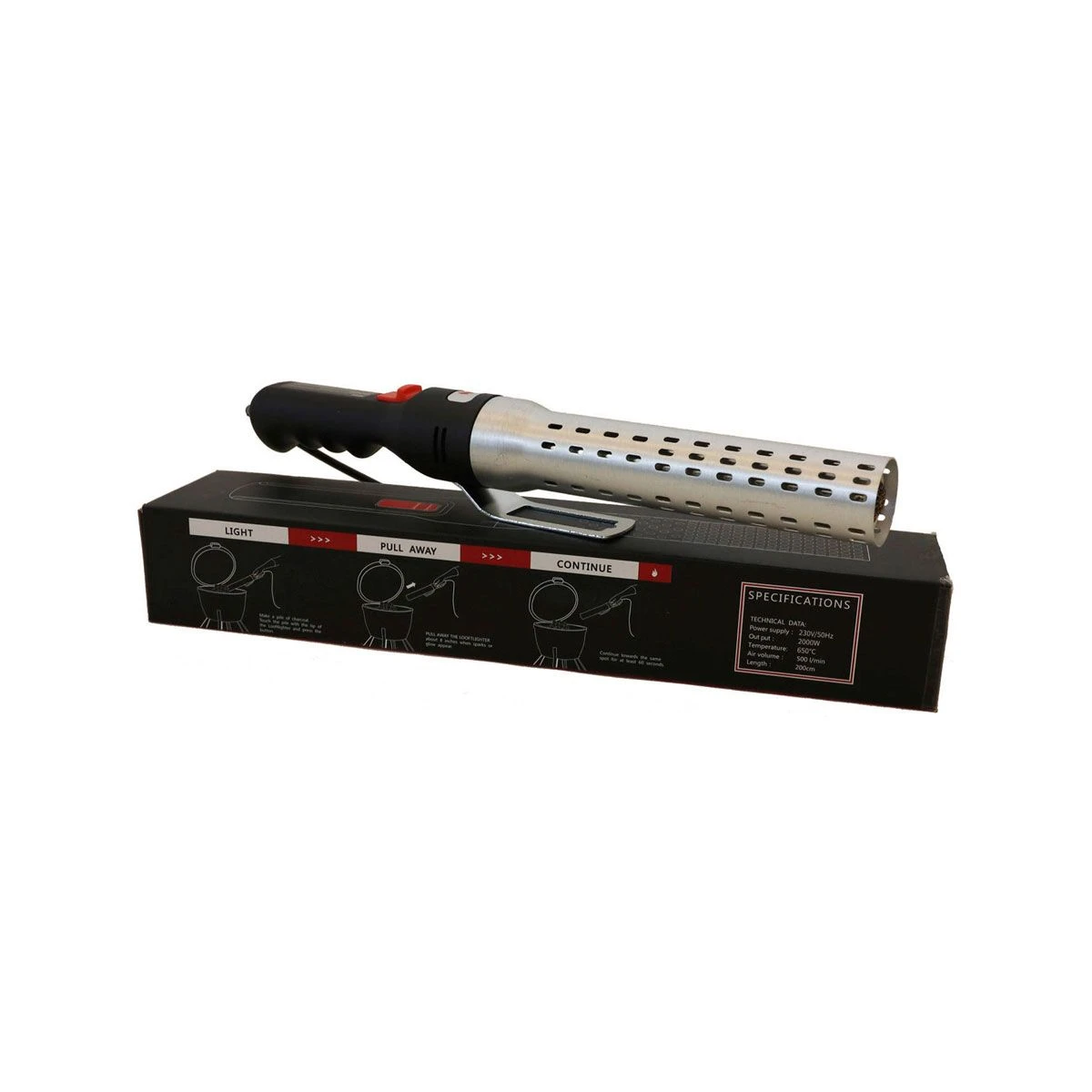 Gebruiksaanwijzing: Wanneer je de kolen in de barbecue hebt gelegd kun je de aansteker er gewoon tussen drukken. Dan kun je hem aanzetten om de kolen door middel van hete lucht te verwarmen. Dit zal resulteren dat jouw kolen al binnen enkele minuten rood gloeiend zijn. De Smart lighter wordt geleverd Incl. veiligheidsschakelaar om oververhitting te voorkomen en ophangbeugel.