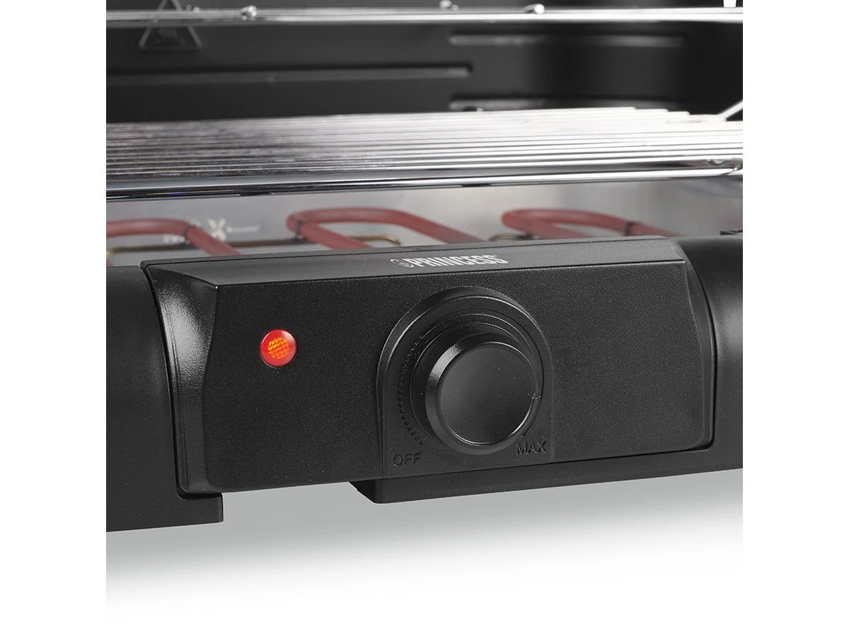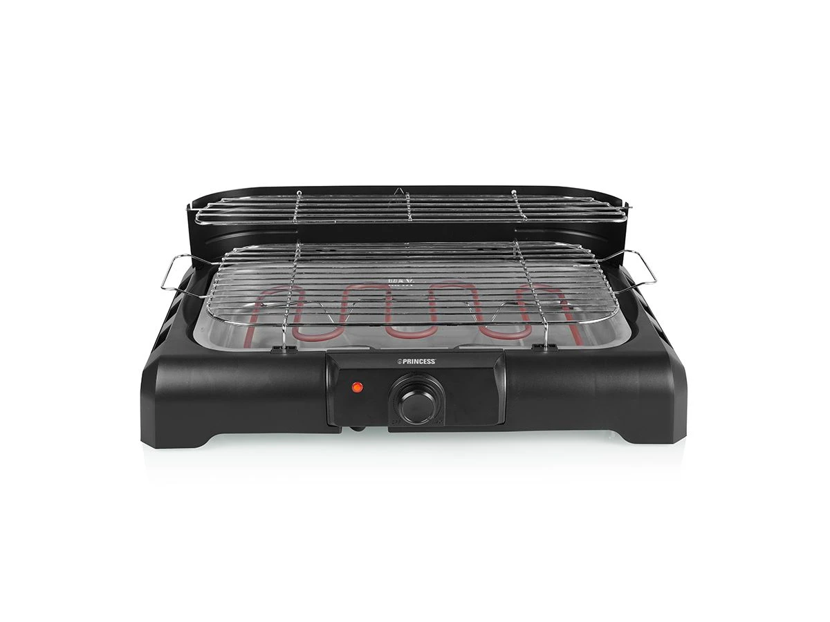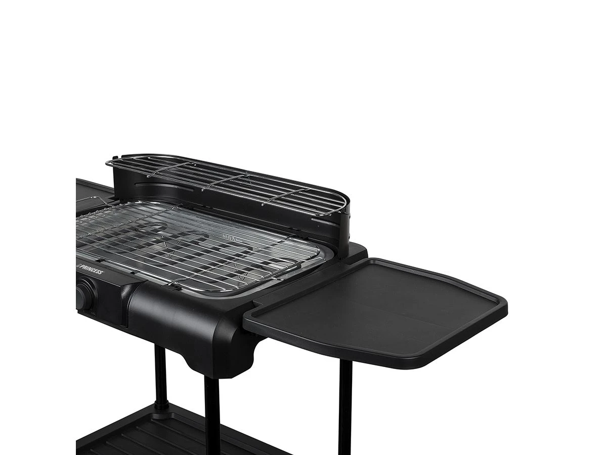 Dankzij de meegeleverde standaard gebruik je de Princess elektrische barbecue zowel als tafelmodel als losse barbecue. De stevige standaard heeft een extra opbergblad waar je al je grillgerei, bestek en marinades in kwijt kunt. De barbecue heeft twee grillroosters op verschillende hoogtes waardoor je niet alleen vlees grilt, maar ook vis en groenten. Gebruik het bovenste grillrooster om een ​​groter stuk vlees te laten rusten, zodat het warm en sappig blijft, terwijl u de groenten snel grilt op het onderste rek, zodat u het allemaal tegelijkertijd kunt serveren.