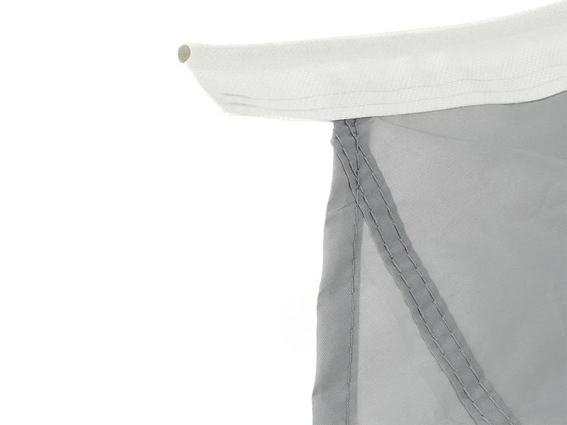 Het opzetten van deze schuurtent is erg eenvoudig, je trekt de pees die zich aan de bovenkant van het doek bevindt door de daarvoor bedoelde rail op de achterkant van de caravan. Vervolgens hoef je alleen nog maar de elastieken op de vier hoeken vast te zetten en de caravan schuurtent is er klaar voor om je kostbare kampeerinventaris te beschermen!