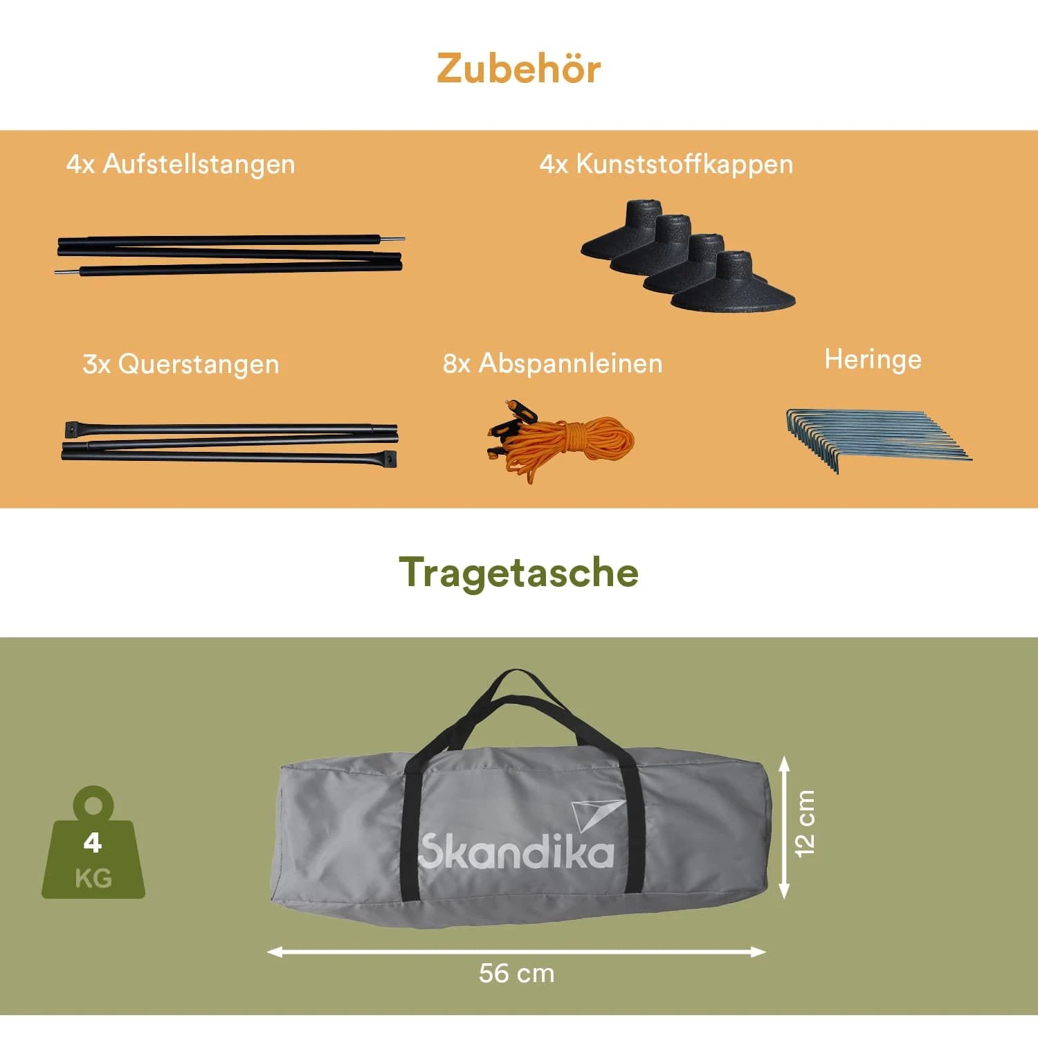 Dankzij de deelbare stokken en het lage gewicht kan het Skandika Bora windscherm overal mee naartoe worden genomen. Een praktische tas voor stofvrije opslag en eenvoudig transport wordt meegeleverd.