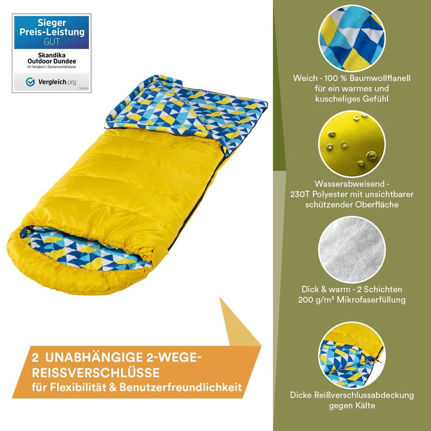 De Dundee is verkrijgbaar met de rits aan de linker- of rechterkant. Een slaapzak met een rits aan de linkerkant kan worden gekoppeld aan een slaapzak met een rits aan de rechterkant om een grote slaapzak voor koppels te maken.