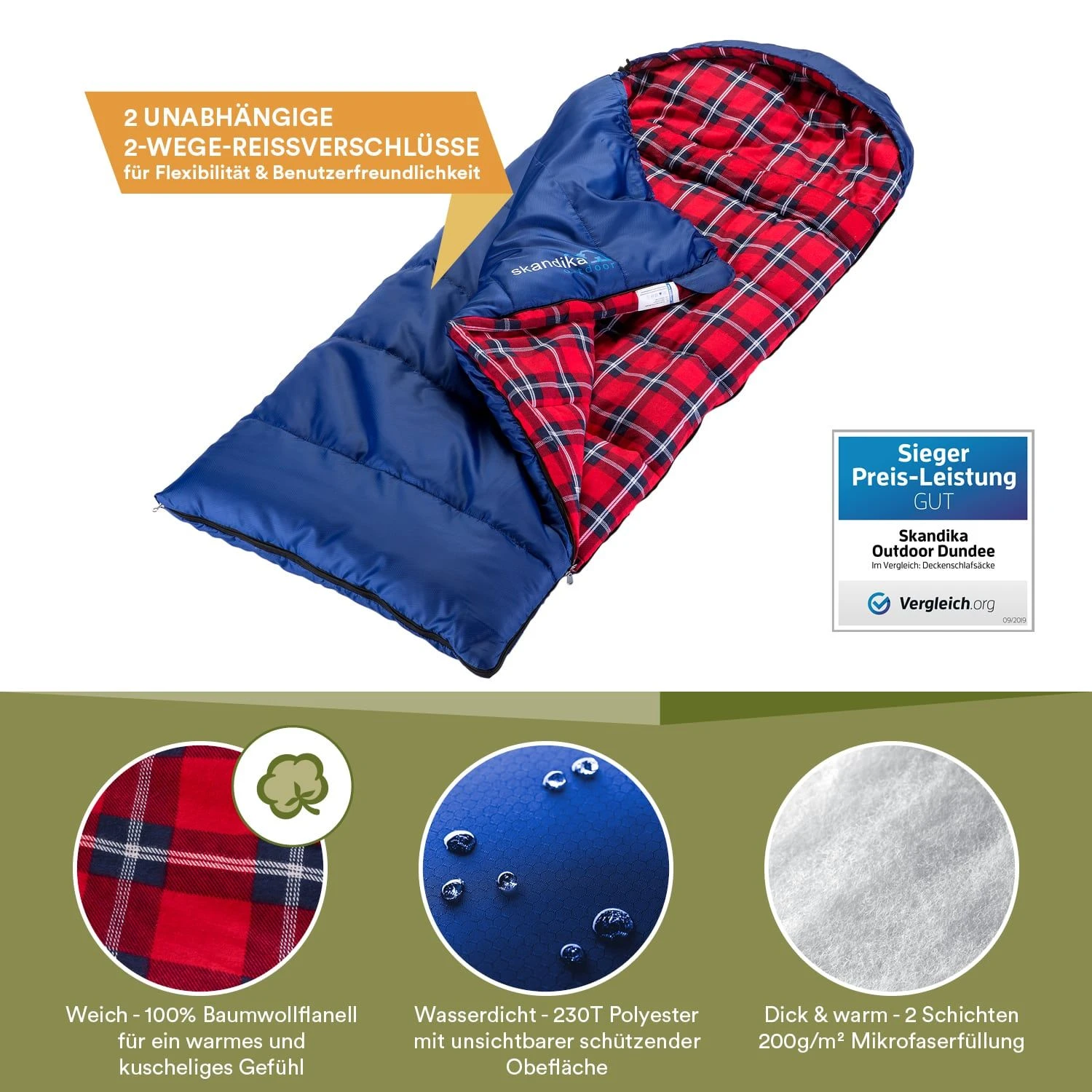 Onze populairste model slaapzak ook verkrijgbaar voor kinderen! De Dundee Jr. slaapzak, genoemd naar het Schotse stadje aan de monding van de rivier de Tay aan de Noordzee, kon nauwelijks gezelliger zijn. Hij is perfect voor kinderen die het benauwd hebben in gewone slaapzakken, want dankzij de rechte pasvorm is er veel ruimte en bewegingsvrijheid. Toch hebben we niet zonder het hoofdgedeelte gedaan, zoals je dat kent van de mummieslaapzak! De ritssluiting aan de zijkant zorgt ervoor dat zelfs kinderen met veel nachtelijke bewegingsdrang altijd bedekt blijven. De slaapzak is overigens ook geschikt voor gebruik bij wat lagere temperaturen en heeft een comfortbereik van +12 tot +2 °C. Zo kunnen zelfs bezorgde ouders lekker slapen. Dus zelfs bezorgde ouders kunnen rustig slapen. De binnenvoering in een prachtig ruitjespatroon is gemaakt van zacht katoenen flanel – heel behaaglijk en niet ritselend, bijna zoals je eigen dekbed thuis.