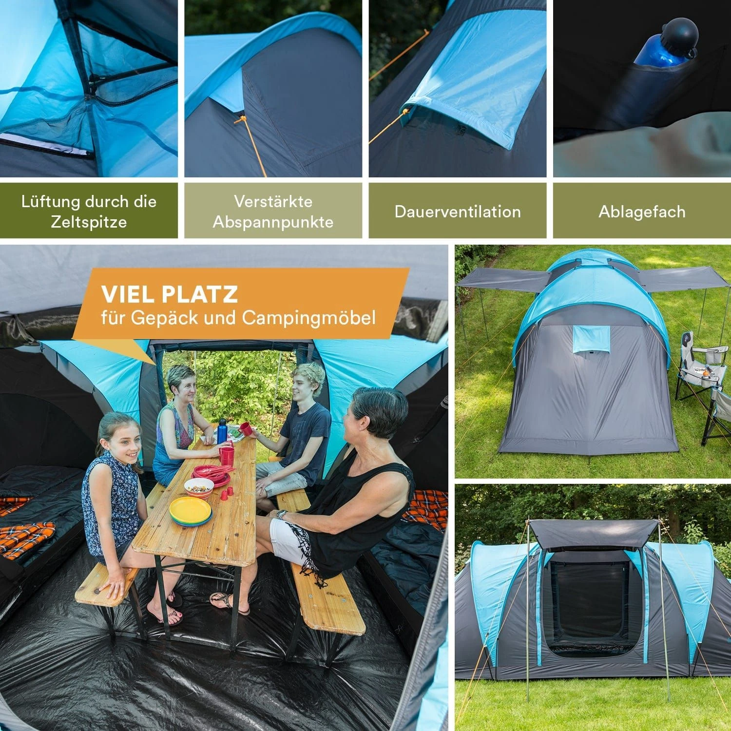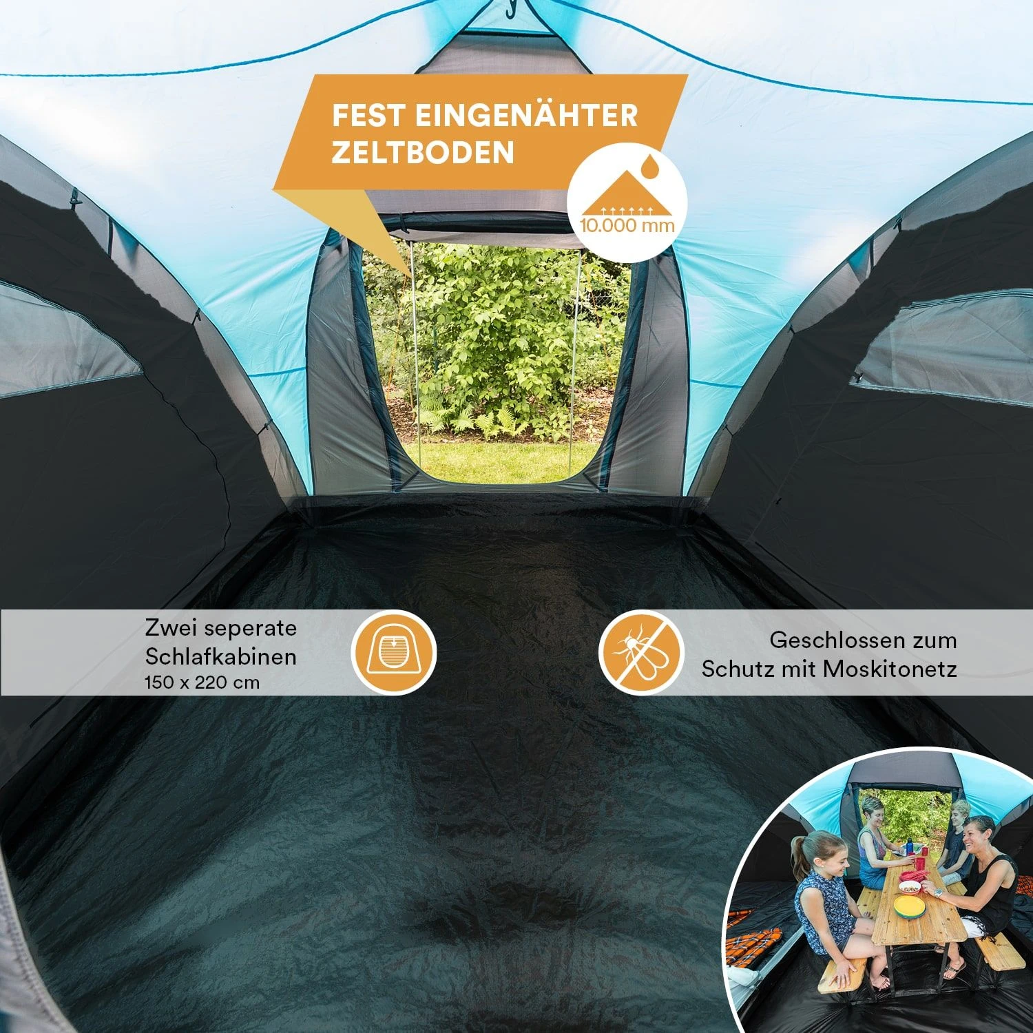 De tent heeft een stevig ingenaaide vloer en de ingangen en slaapcabines zijn voorzien van muskietengaas. Dit houdt vervelende insecten buiten en de binnenkant wordt beschermd tegen vocht en tocht.