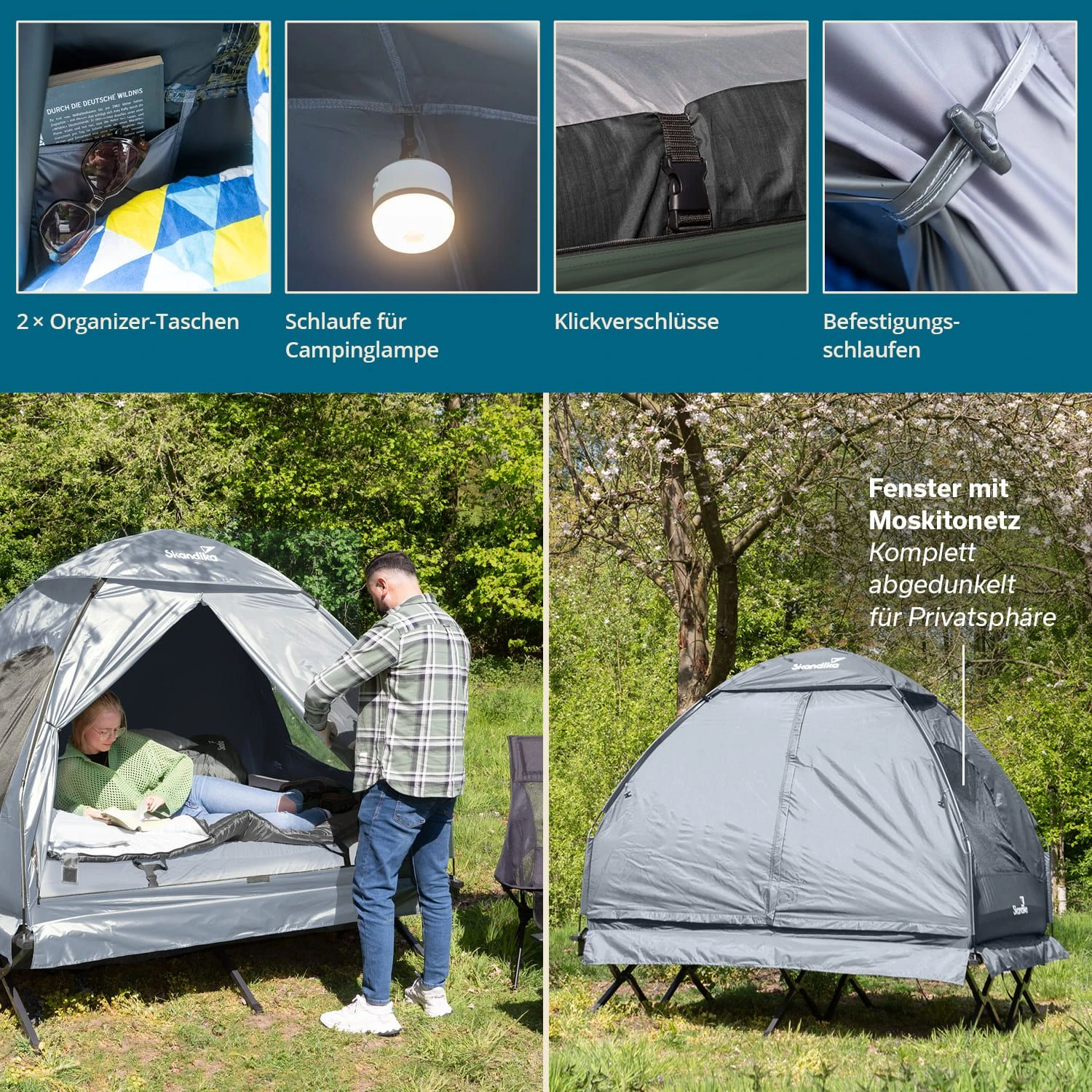 -Dubbel veldbed met luchtmatras en beschermende koepelvormig tentdak