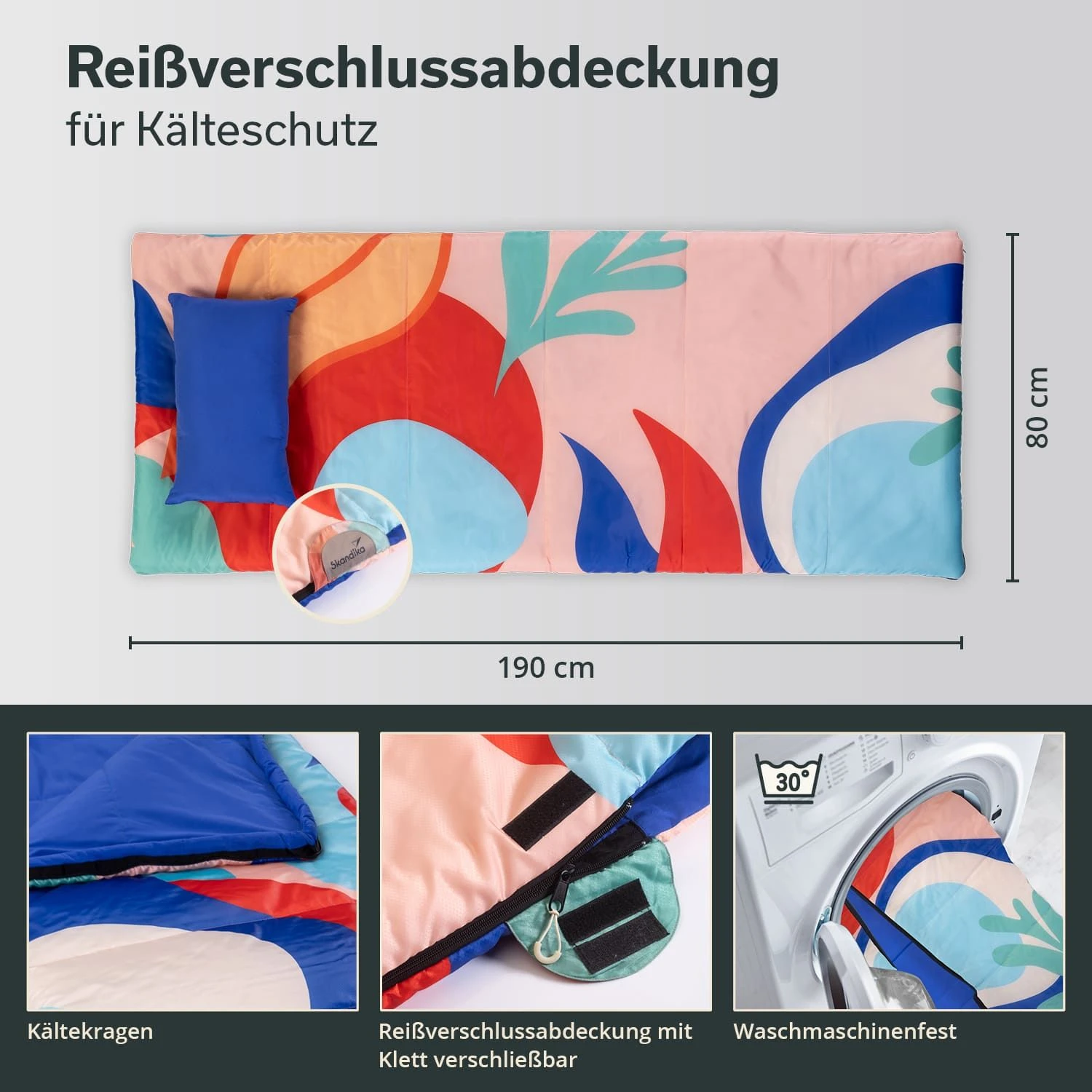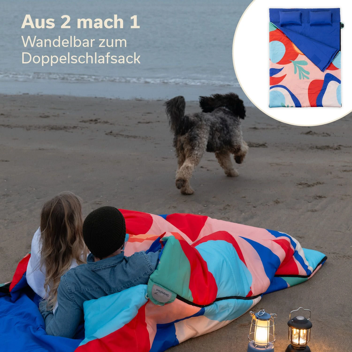 Waar ze ook gebruikt worden, de buitengewone, kleurrijke ontwerpen maken van deze comfortabele deken slaapzakken met bijpassend kussen een absolute blikvanger. En dat bijna overal! In een tent op de camping, bij een picknick op het strand, rond een kampvuur in de achtertuin, tijdens een roadtrip in de auto of als reserve dekbed thuis – de kleurrijke Sovro collectie biedt een oplossing voor vele situaties.