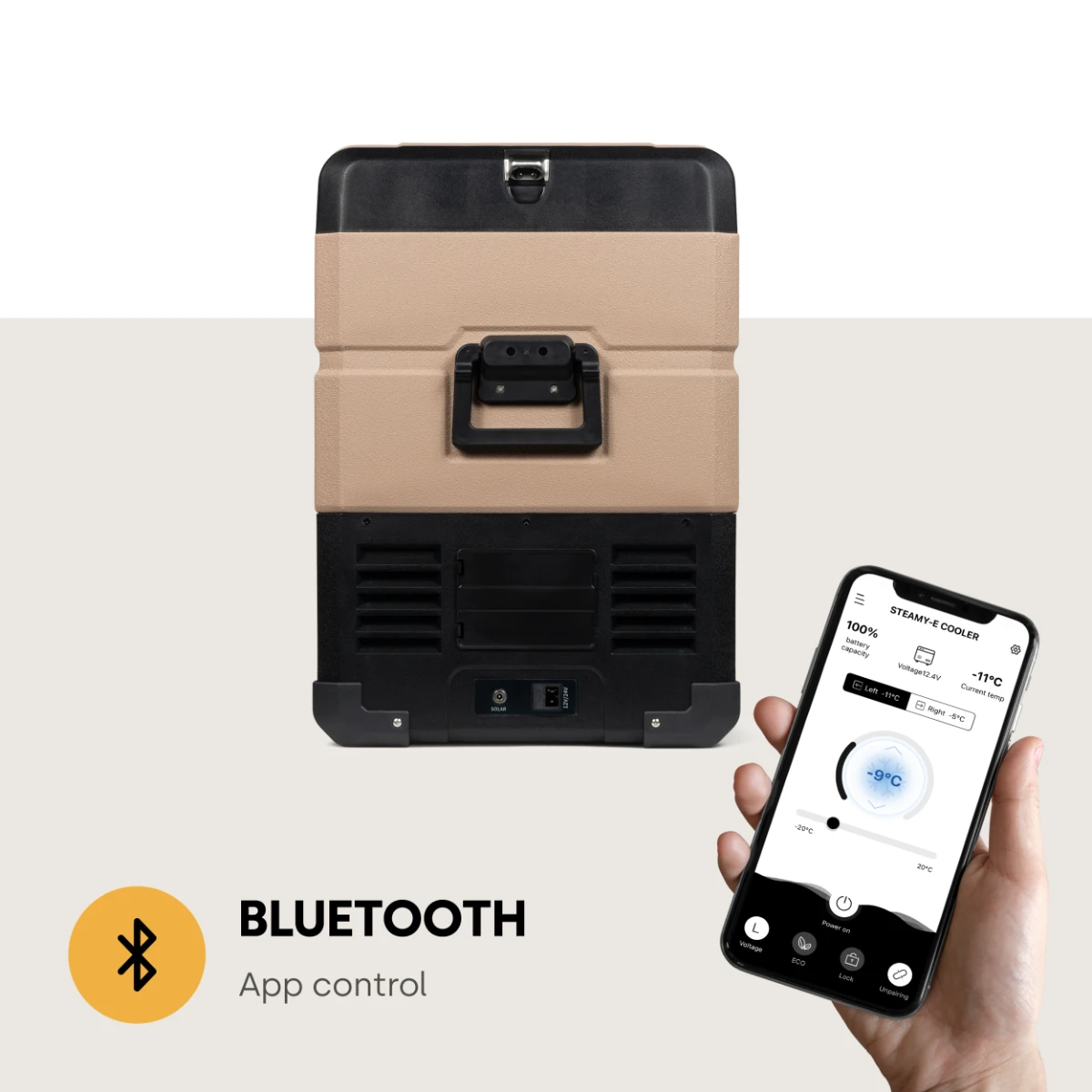 De Steamy SECTA series biedt dual zone temperatuurregeling middels het LCD-paneel, hierdoor kunt u elk compartiment afzonderlijk instellen als koelkast of vriezer. Middels de Steamy-E App kunt u de koelbox ook bedienen vanuit de luie stoel. De extra krachtige compressor biedt een snel, stil en efficiënt koelsysteem, waardoor de koelbox is in te stellen tussen de -20℃ en +20℃ per compartiment. U kunt kiezen voor een MAX en Eco stand voor ofwel extra snelle koeling of een efficiëntere koeling.