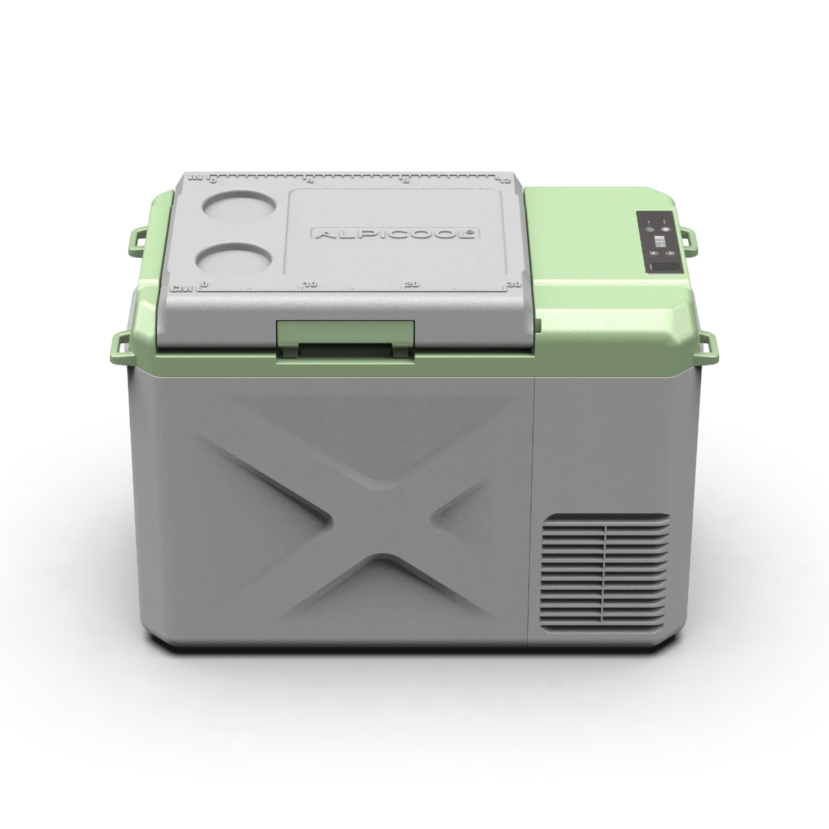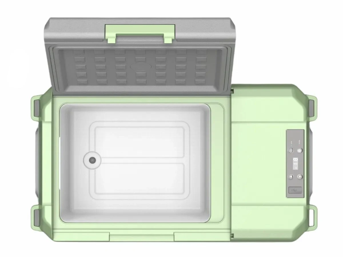 De combinatie van een verfijnde grijze tint met afgewerkte groene accenten geeft een eigentijdse uitstraling aan deze stevige koelbox. Overal rondom is de koelbox geïsoleerd met schuim, wat zorgt voor een uitstekend temperatuurbehoud. Aan de bovenkant bevinden zich twee afzonderlijke deksels, waardoor u elk compartiment apart kunt openen en sluiten. Het LCD-scherm aan de zijkant biedt controle over beide compartimenten. De gegoten handgrepen aan de zijkanten maken het eenvoudig om de koelbox te verplaatsen of in en uit te laden.