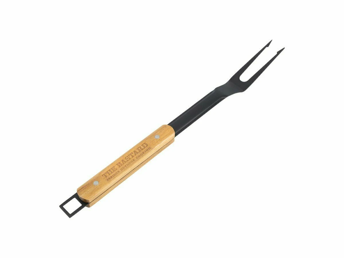 Dankzij het handige ophangoog kun je de vork eenvoudig aan je barbecue of gereedschapsrail hangen, zodat je hem altijd binnen handbereik hebt. Perfect voor het eenvoudig draaien en serveren van vlees, vis en andere gerechten.
