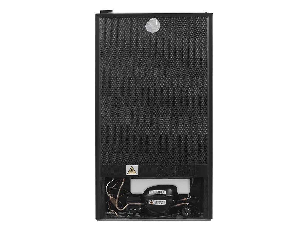 De koelkast heeft een stoere uitstraling dankzij de zwarte kleur in combinatie met de geïntegreerde handgreep.