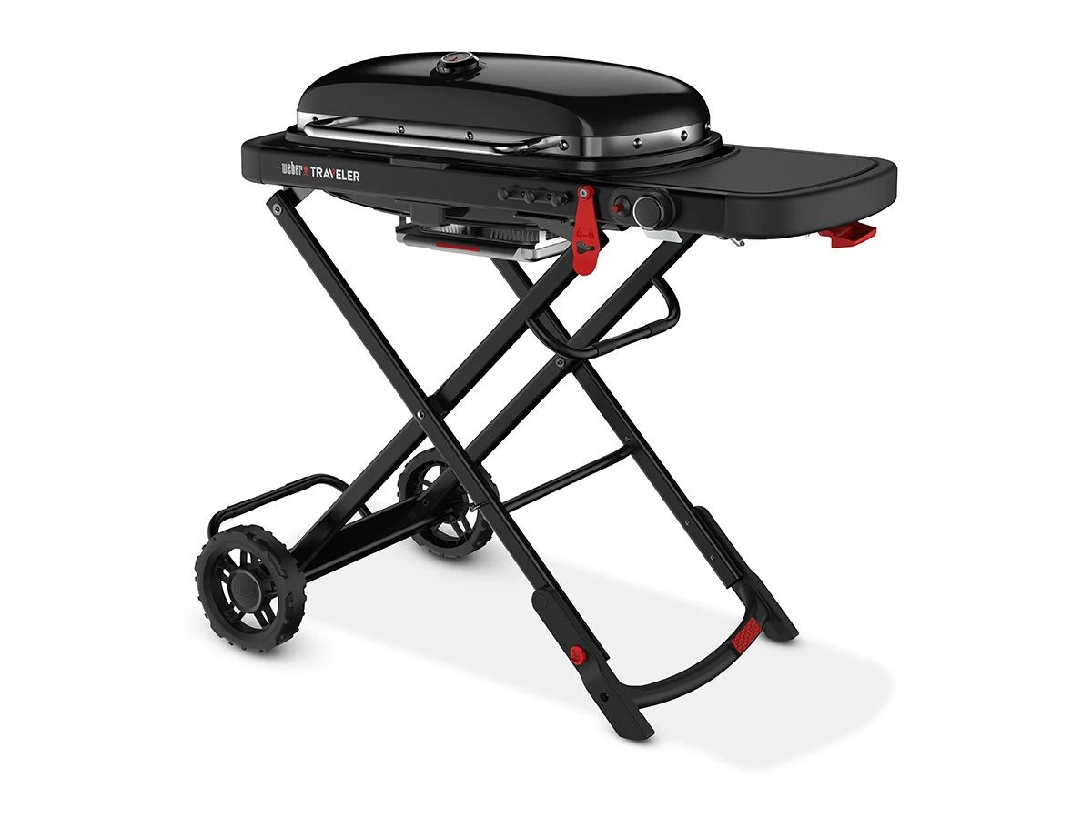 De Weber Traveler heeft een afmeting (deksel dicht) van ongeveer 58,4 x 110,8 x 94,5 centimeter. Ingeklapt is de afmeting nog maar 58 x 116 x 31 centimeter. De barbecue is gemaakt van hoge kwaliteit geëmailleerd staal met daarin 2 gietijzeren roosters. Naast de barbecue zit een handig werkblad van 37 x 22 centimeter.