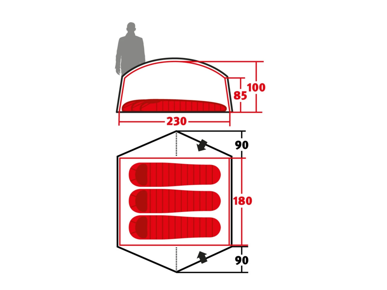 De vrijstaande geodetische tent voor 3 personen maakt deel uit van de populaire Exogen lichtgewicht serie van Wechsel. Met een ligoppervlak van 230 x 180 cm (L x B) en een comfortabele zithoogte van 100 cm weegt de Exogen 3 2,5 kg. Twee apsissen met een diepte van 90 cm bieden voldoende opbergruimte. De hybride tentconstructie heeft veel voordelen: De tent is zelfdragend, wat betekent dat u de tent eenvoudig kunt verplaatsen als deze eenmaal is opgezet. Er zijn verschillende opzetmogelijkheden: bij zomerse temperaturen dient de binnentent al als lichte bescherming tegen weersinvloeden. In combinatie met het grondzeil kan de buitentent ook zonder binnentent gebruikt worden. Horren aan het hoofdeinde, voeteneinde en in de deur zorgen voor een goede ventilatie zonder onaangename tocht.