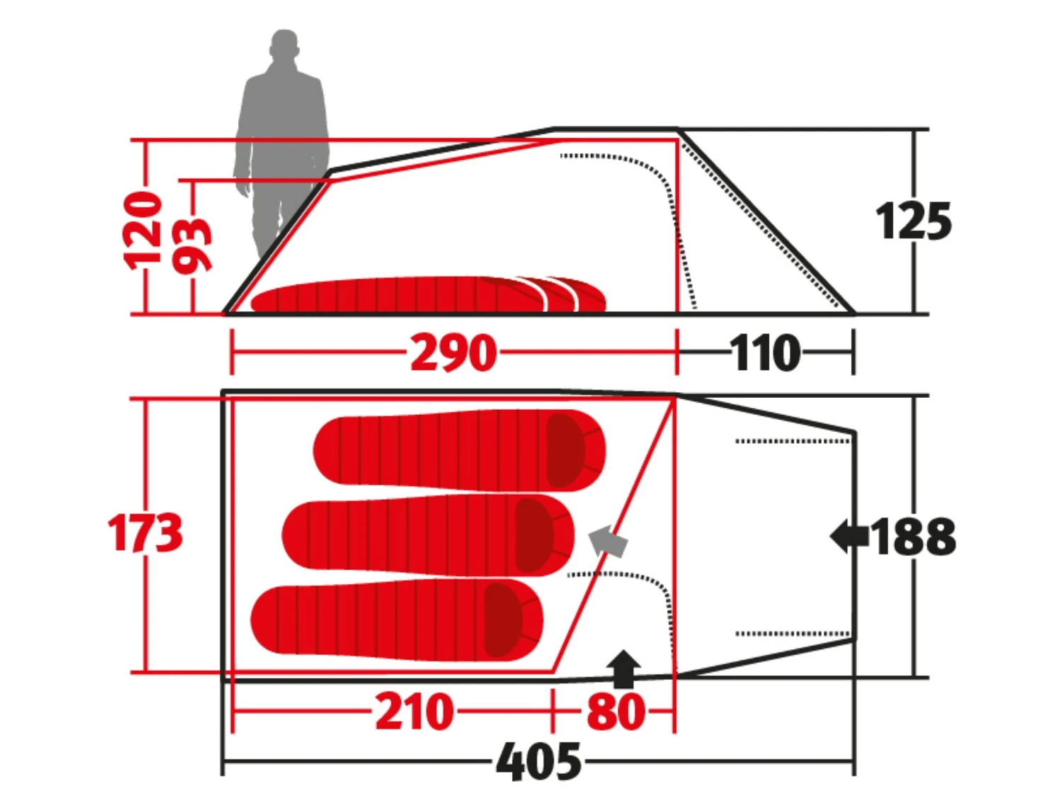 Gewoonweg onmiskenbaar! De Outpost 3 is een van onze meest succesvolle modellen en maakt al vanaf het begin deel uit van ons programma. De zeer ruime tweepersoonstent met de unieke binnententvorm biedt ook voor zeer lange personen een comfortabele slaapplaats. Het biedt alle voordelen van een asymmetrische tunneltentvorm: relatief laag gewicht en hoge stormstabiliteit met een grote voortent en een ruime binnentent. De Outpost 3 is voorzien van een regenbestendige, D-vormige ingang van de binnentent en een grote vestibule met twee ingangen. De binnentent biedt voldoende ruimte voor twee personen en is voorzien van ventilatie aan de achterzijde. Dankzij de zij-ingang en de vooringang kunt u uw bagage eenvoudig hanteren. Kleine spullen kunnen ook in de diverse vakken in de binnentent worden opgeborgen. Voor een panoramisch uitzicht vanuit de tent kan de vooringang met een paar handelingen worden opgerold. In vergelijking met het model van vorig jaar hebben we de grote dakventilatie in het apsisgedeelte achterwege gelaten