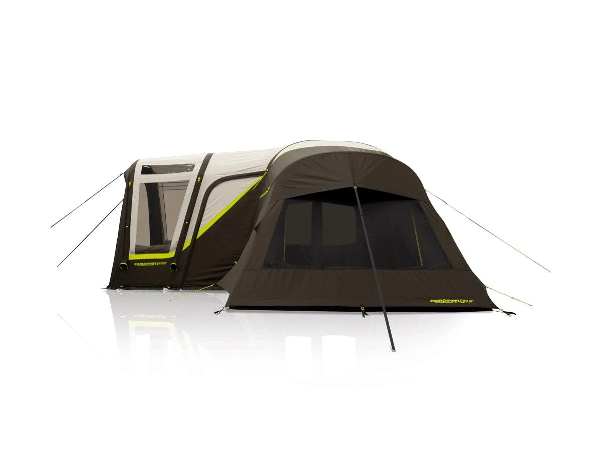 Geniet van de superieure kenmerken, privacy en opzetgemak van onze nieuwe Pro II V2 air tent. Deze opblaasbare tent met het centrale kruis buizensysteem geeft u verbeterde stabiliteit en een grote leefruimte en veel privacy in de twee slaapcabines. Aan de luifel kunt u ofwel een optionele awningwallset ter afsluiting of een Aerobase shelter ter vergroting van de leefruimet bevestigen door middel van de links. De Pro II V2 air tent is de perfecte oplossing voor de familie die comfortabel wil kamperen en ook van hun eigen ruimte wil genieten. U voelt zich een Pro als u deze tent in een paar minuiten heeft opgezet!